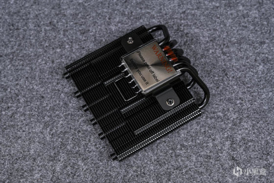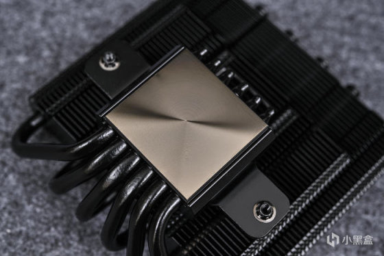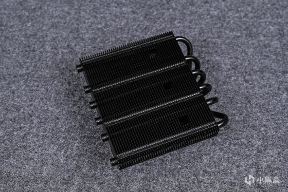 散熱器本體尺寸爲 123.5X120X52mm,全黑化處理,共有 45 片 0.4mm 全鍍鎳純鋁迴流焊散熱鰭片。