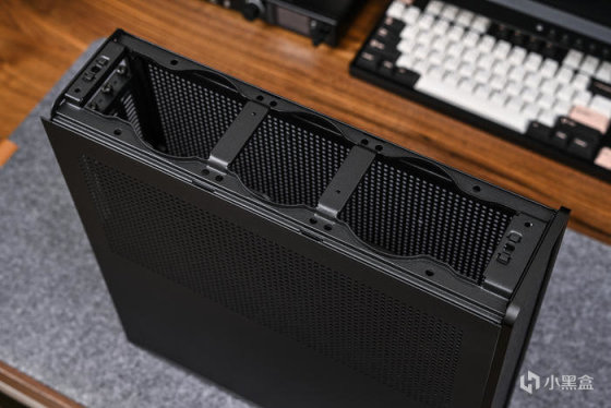 主機頂部爲整面 Mesh 網孔設計,讓熱上升的空氣無處遁尋,當然想要最大化排風效率的話,還可以再內部安裝 3 顆 8cm 風扇排風。