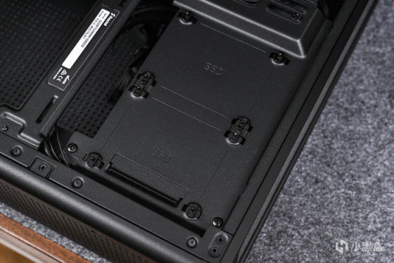 前面板磁吸式設計,取下前面板,可以看到前面板鏤空位置可以安裝 2 個 2.5 寸 SSD。