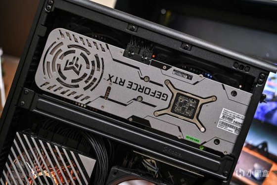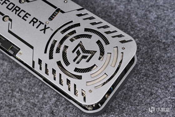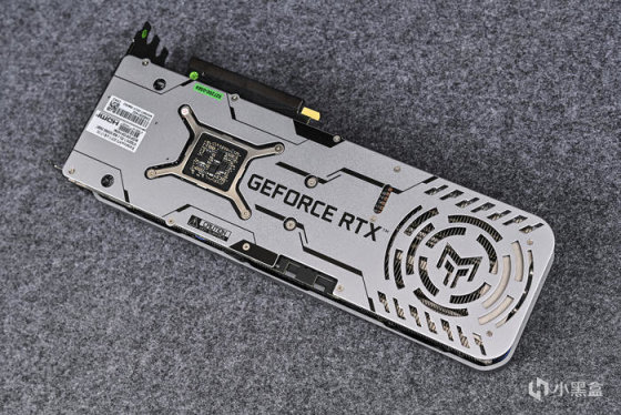顯卡背面爲全金屬散熱背板,輔助散熱的同時防止PCB變形。中央印有GEFORCE RTX字樣。