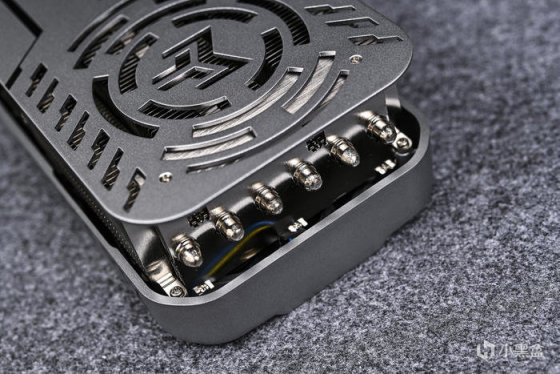 電源尾部通體鏤空通風散熱設計,右側爲電源接口。