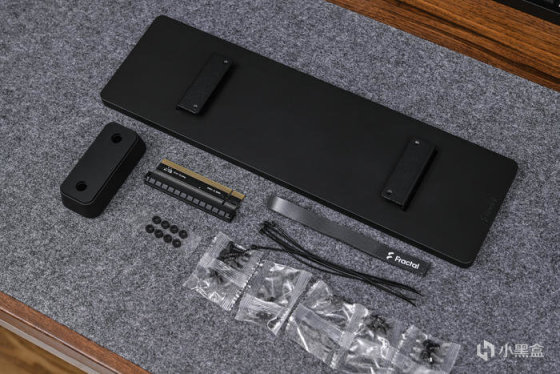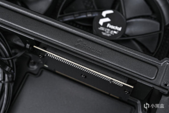 中央橫杆爲顯卡PCIe固定支架,上面陰刻 Fractal Logo。