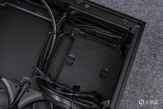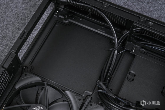 移除底板,可以看到這裏匯聚了機箱 IO 線材和電源線材,空間充裕,裝機時電源線材也可以藏於此處。