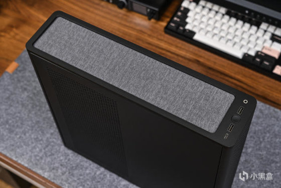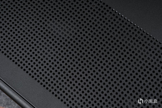 前面板爲編制布料材質,內有通風網孔,邊框爲鋁合金材質,黑化陽極,觸感細膩。