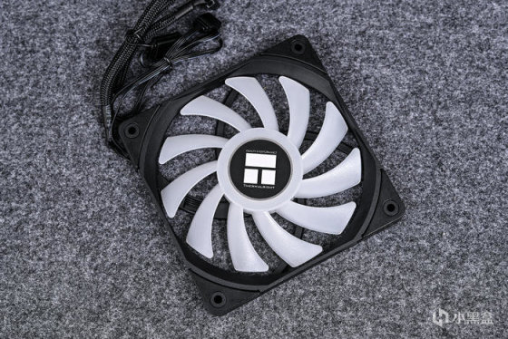 附帶的風扇是TL-C12015B-S,15mm薄扇,尺寸爲 120mm*120mm*15mm,採用 S-FDB 軸承,最高轉速爲 1800±10% RPM,風扇噪音≤26.1 dBA,最大風量 59 CFM,四角都有類膚柔軟材質硅膠減震墊。支持各大主板 ARGB 同步。