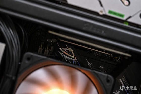 整機黑色調,ROG LOKI 洛基電源和利民 AXP120-X67使用橘黃色 RGB 燈效(R64,G17,B0),其餘硬件均爲無光。