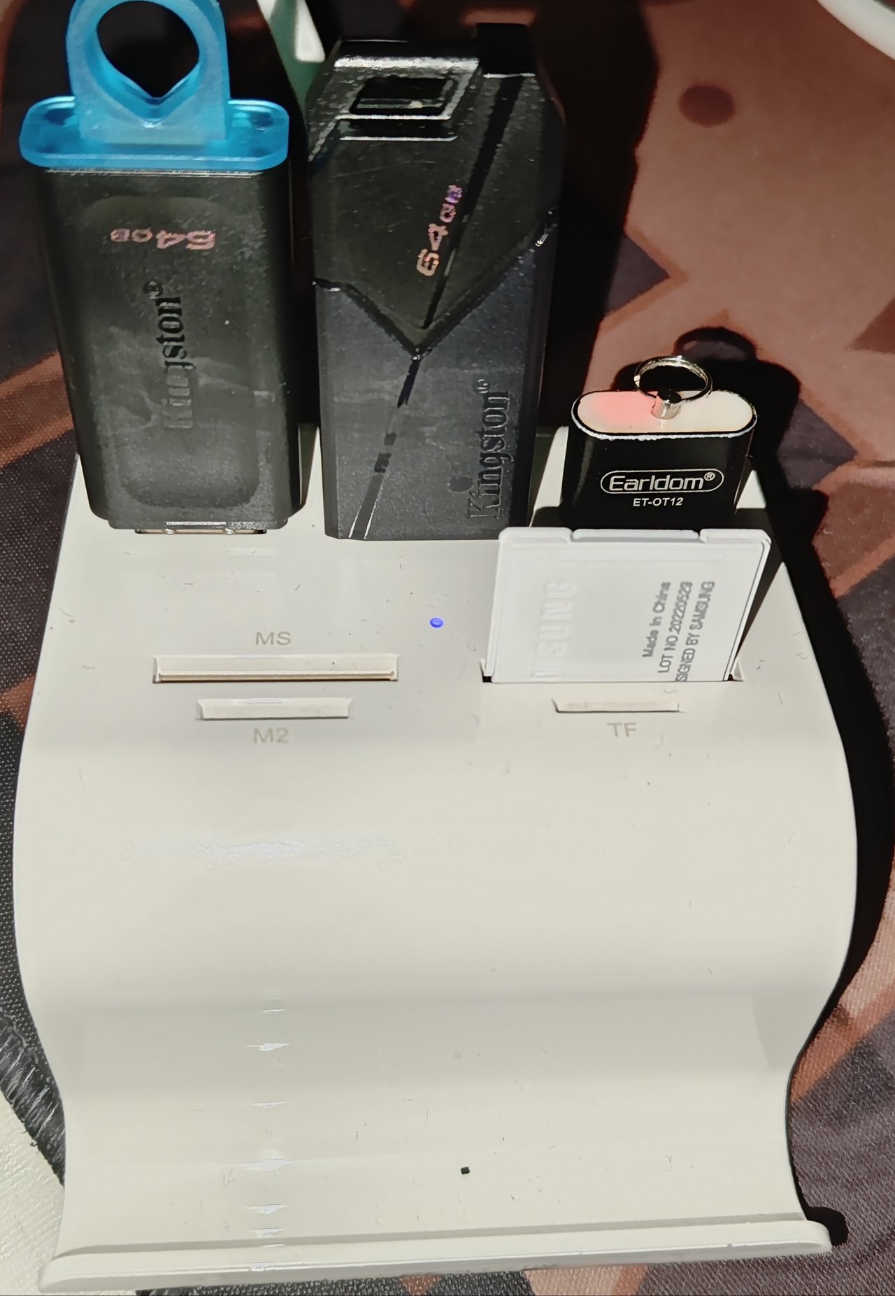 現在我把它們插在電腦上存儲一些小遊戲,文件等等,由於電腦USB接口有限,每次用一個換一個都要來回拔插,電腦USB接口都有點鬆了,所以我又買了一個USB+SD拓展塢,來一起放它們