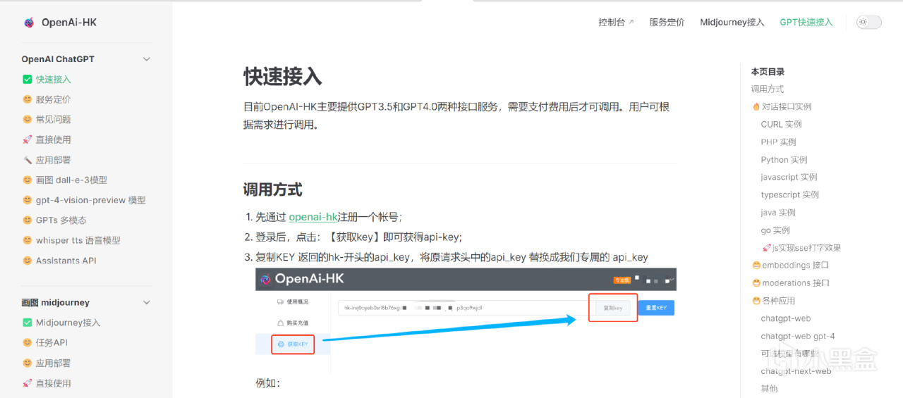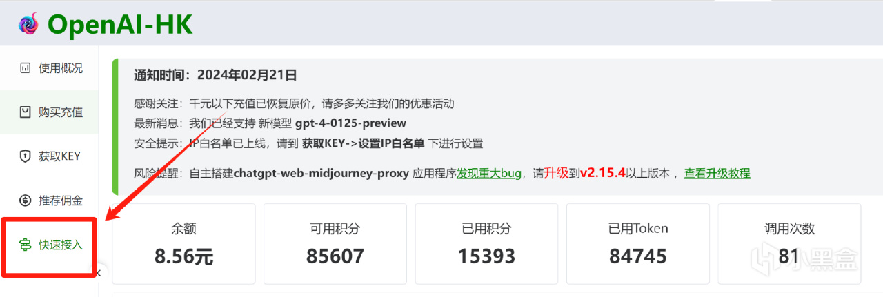 这里用的OpenAI中转商是OpenAI-HK,计费比较适合轻度用户,用多少扣多少,不用包月啥的,并且这网站用注册后会送价值1毛钱的积分可以用来体验。