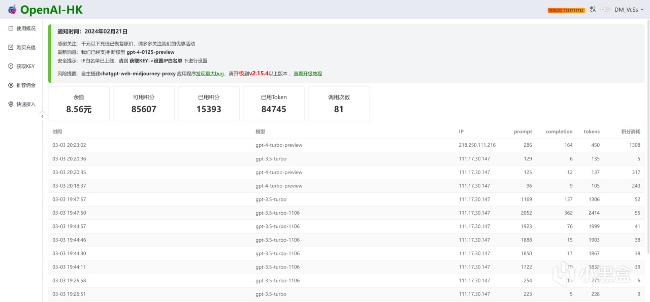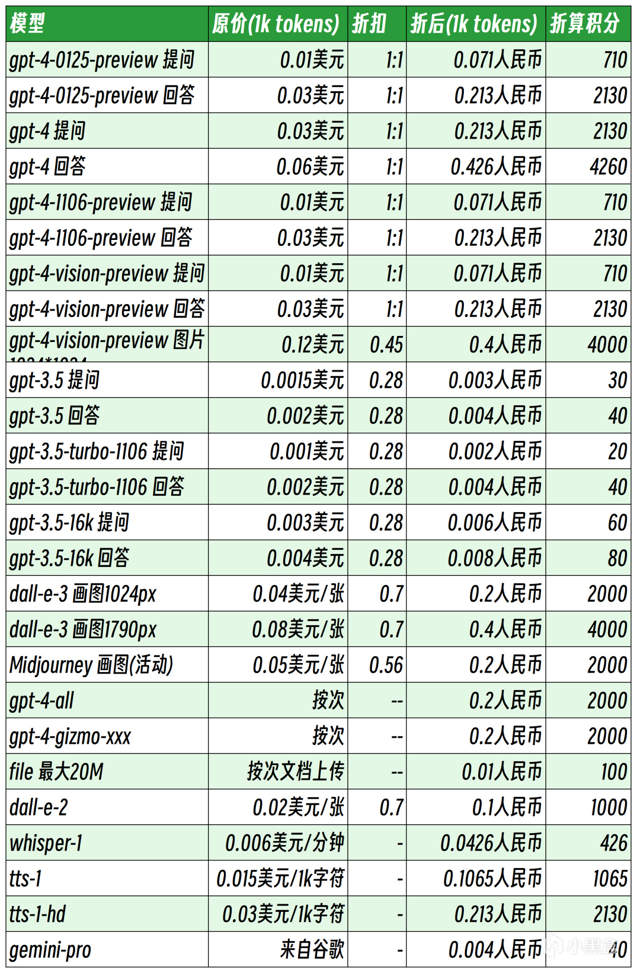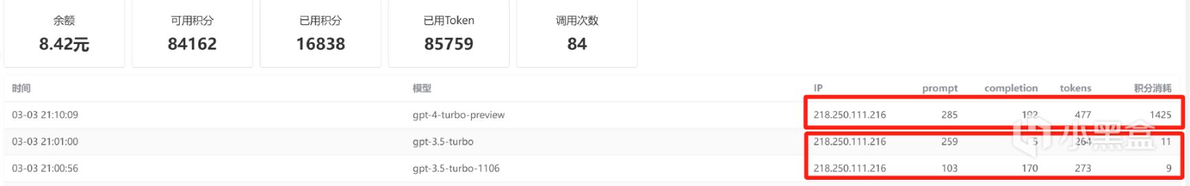 ▼而如果是用更强更贵gpt4-turbo-preview模型的话,这1000积分连一次对话都不够用。