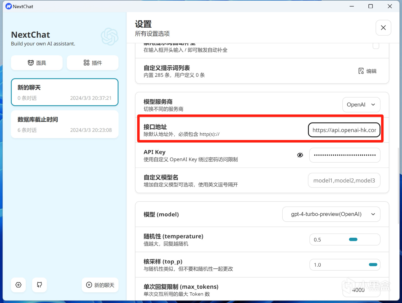 ▼在接口地址这里,修改成"https://api.openai-hk.com"(不带引号哈):