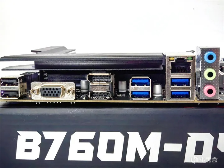 最后,来看看主板IO接口,从左到右依次为2个USB2.0,VGA,DP,HDMI,2个USB3.2,千兆网口和2个USB3.2,3个音频插孔,可以说要外连接口方面全配齐了,