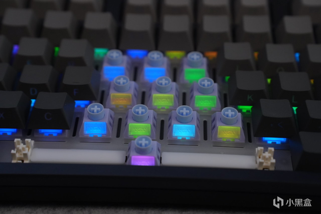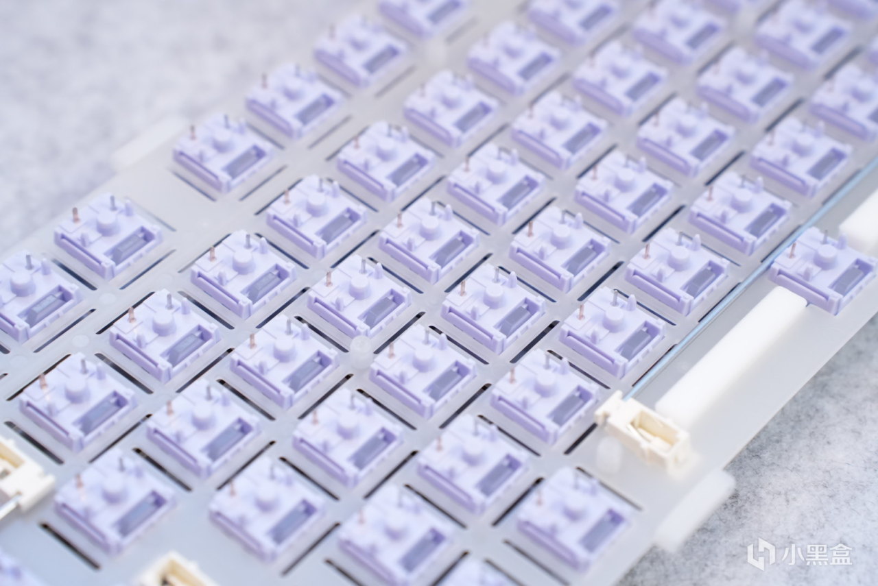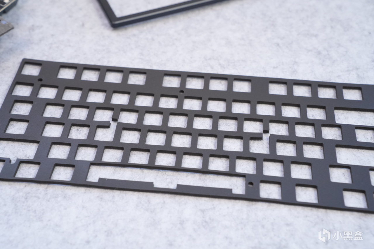 定位板采用的是pc材质开槽定位板,pc材质会让整把键盘变的更软一点,开槽则是为了键盘手感的一致性,卫星轴采用了ATK他家的自研卫星轴,手感很不错,大键可以说是相当的稳。