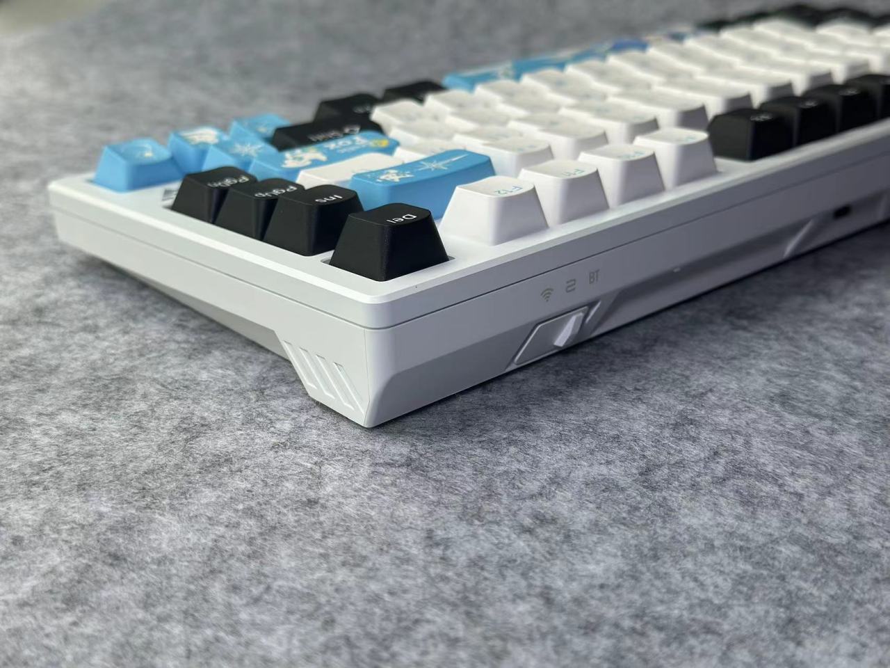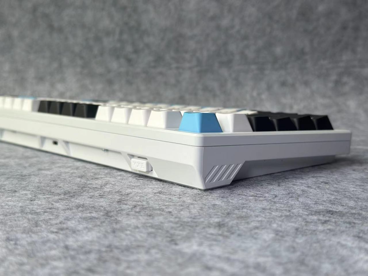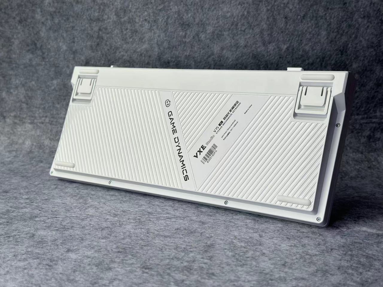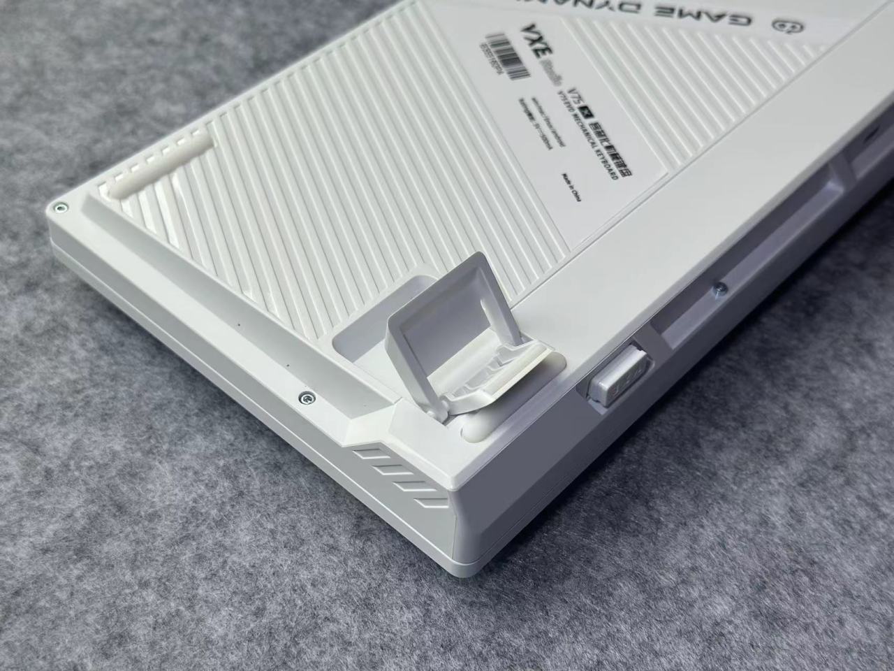 V75X這把鍵盤在側面的設計上是下了一些功夫的。整個斜紋造型讓整把鍵盤更加的電競化,但要是側面如果在加一條導光條,可能桌面氛圍會更加優秀。2.4G收納倉則是設計在了左上角。