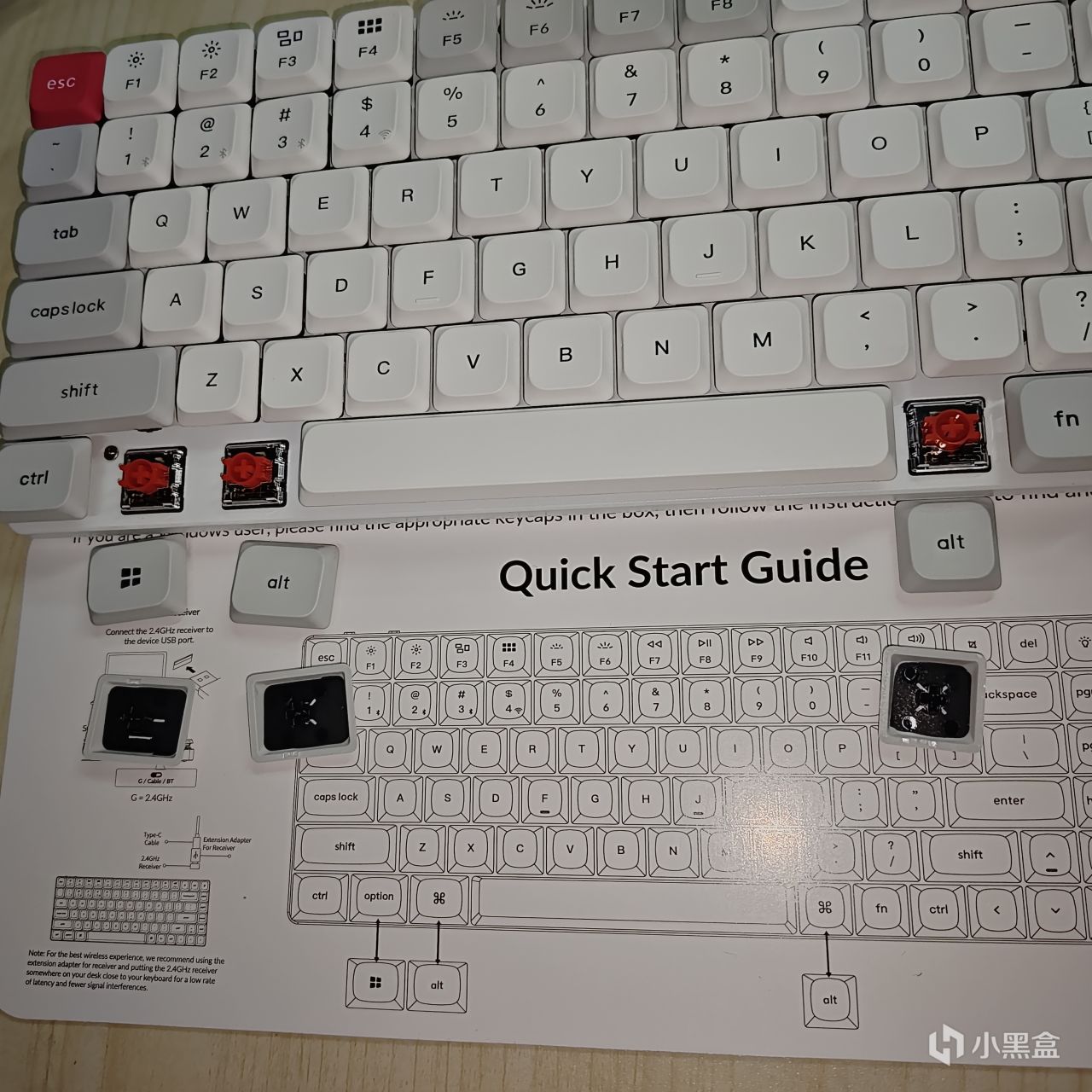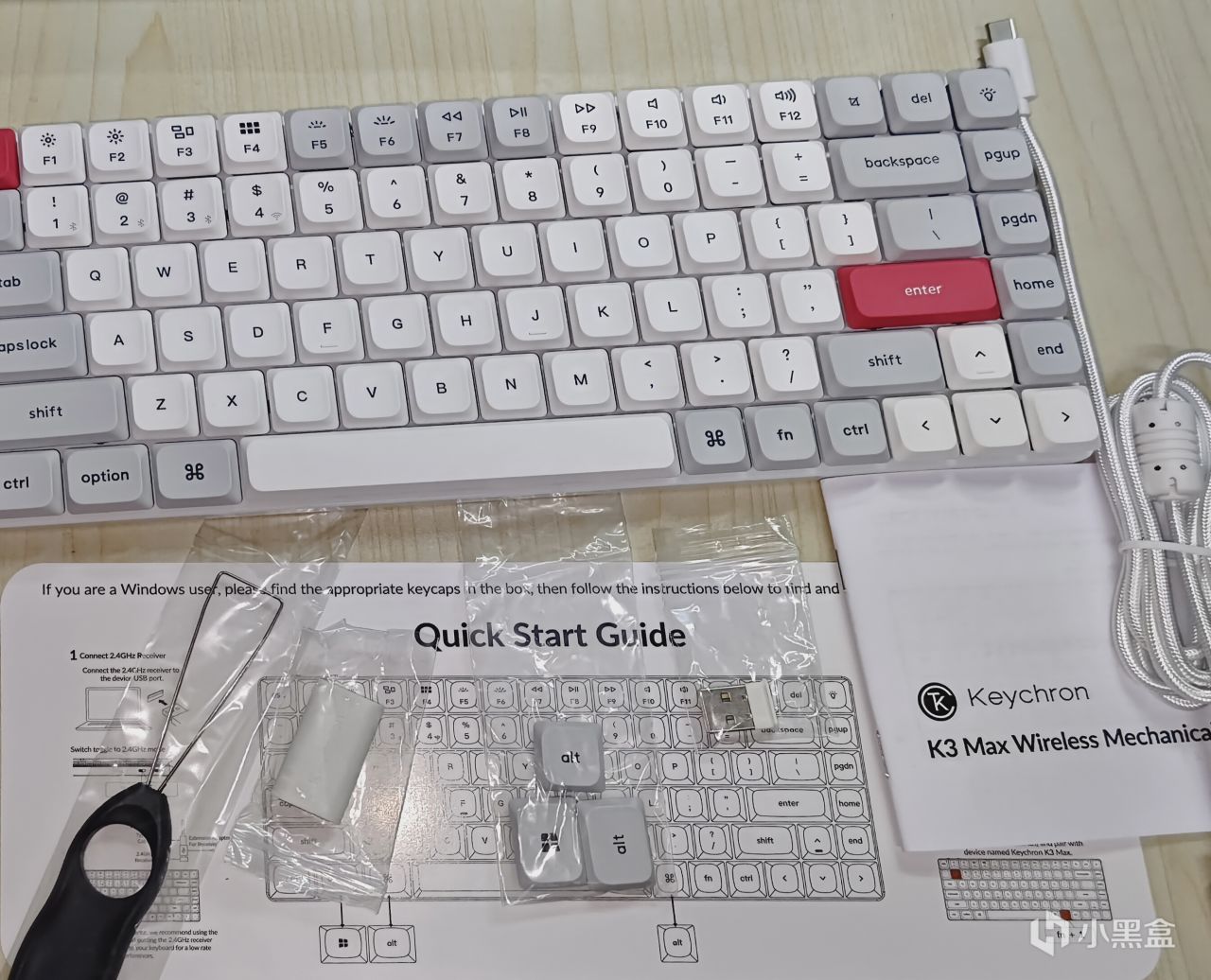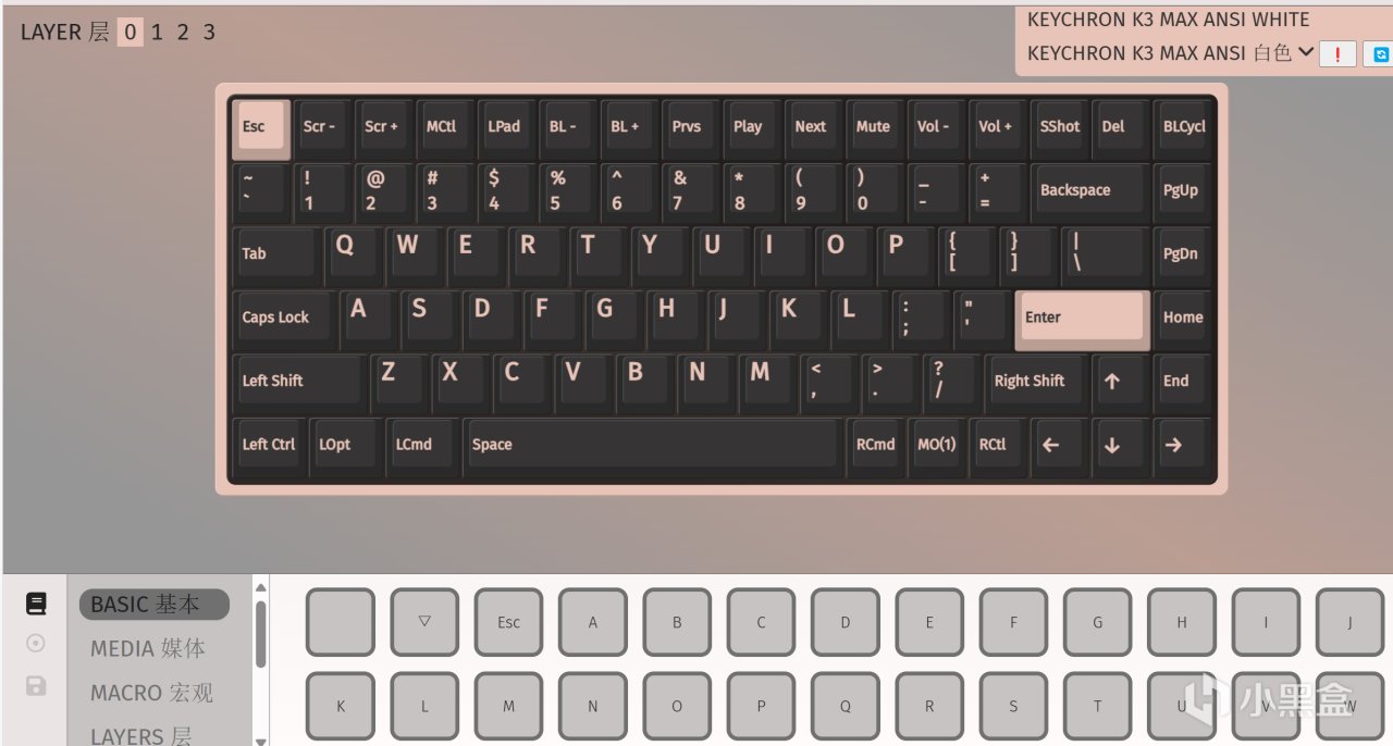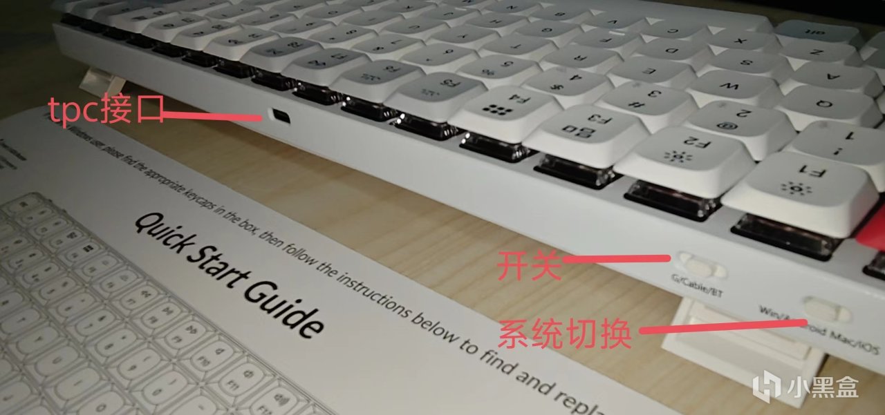 可以看到k3m的默认键位是适配mac系统的,windows系统的盒友们,可以更换键帽了,键帽是双色注塑PBT键帽,更耐磨耐脏,不易打油掉色