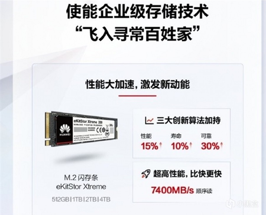 华为作为科技行业的领军人物,在消费级SSD这块一直没有大的动作,近日,华为也开始进入消费级SSD。近日华为发布了eKitStor Xtreme系列M.2 NVMe SSD,采用华为自己的主控+长江存储闪存,读取速度达7400MB/s,其拥有3大算法加持,让性能提升15%、寿命提升10%、可靠性提升30%。我们都知道,华为在技术方面遥遥领先,但华为产品的价格也比较贵,华为进入消费级SSD市场,把企业级的存储技术应用于消费级,必定会带动SSD产业的升级发展,为消费者更多技术层面的创新,这将会促使消费级SSD厂家加大研发,用新技术去应对华为的挑战。如果没法在技术层面和华为匹敌,那么想获得市场,降低成本就成了唯一的出路,而随着成本的降低,我们消费者就可以买到更多高性价比的SSD。