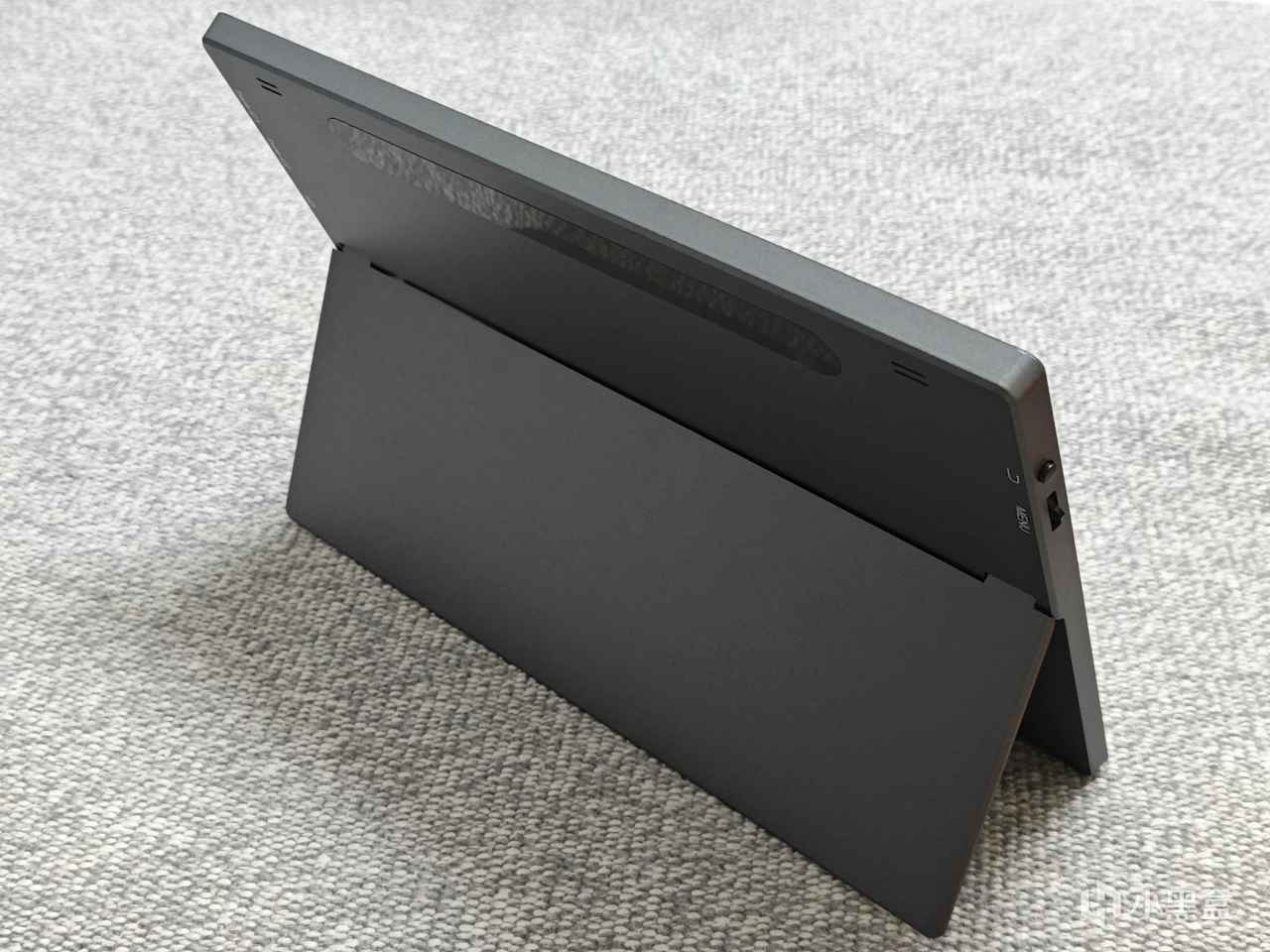 背面的設計也是非常精簡好看,上方是2個揚聲器,對的,這款屏幕自帶音箱!中間是一個裝飾條,下方是顯示器支架的開合位置,能看到做工還是非常可以的,縫隙很小,美觀性是完全不用擔心的。
