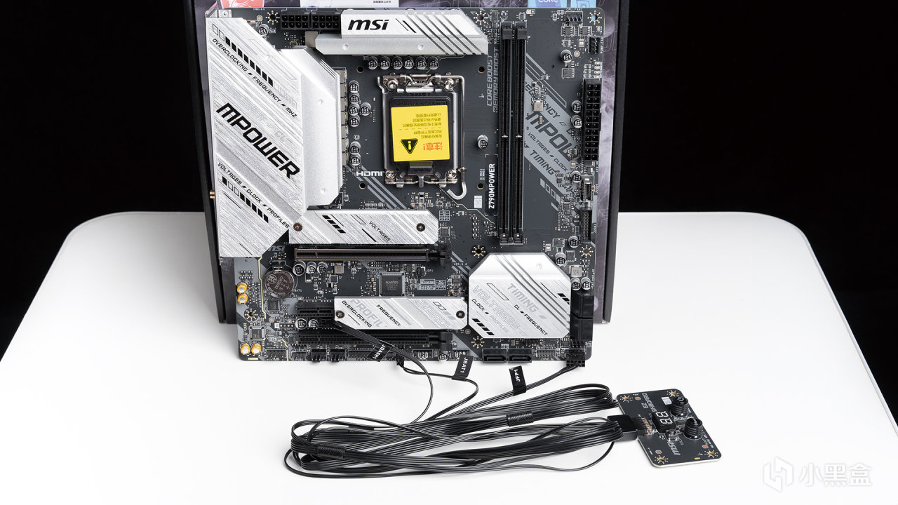 Z790MPOWER的配件一览:贴纸、快速说明书一类纸质材料、EZ M.2一体式固定螺柱、M.2螺丝、SATA数据线、鲨鱼鳍坐式Wi-Fi天线以及简易操作面板,配件数量不算太多,但每一样都很实用。