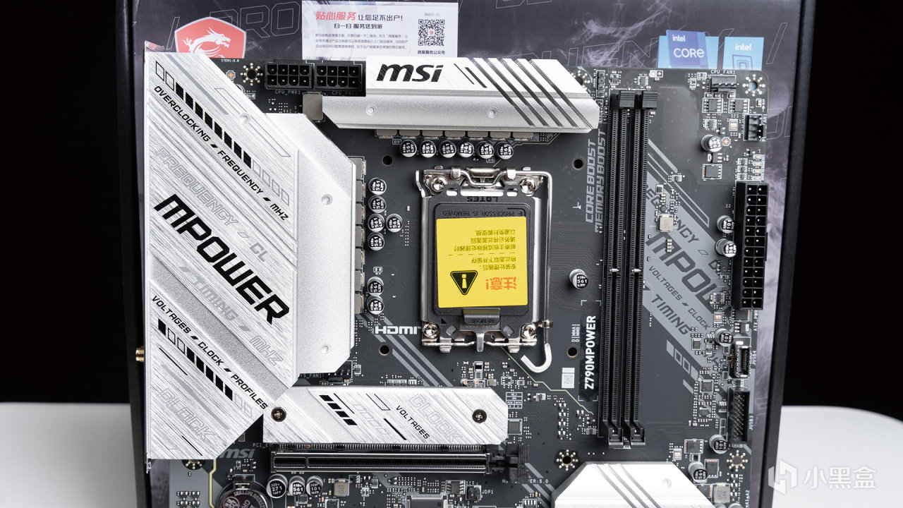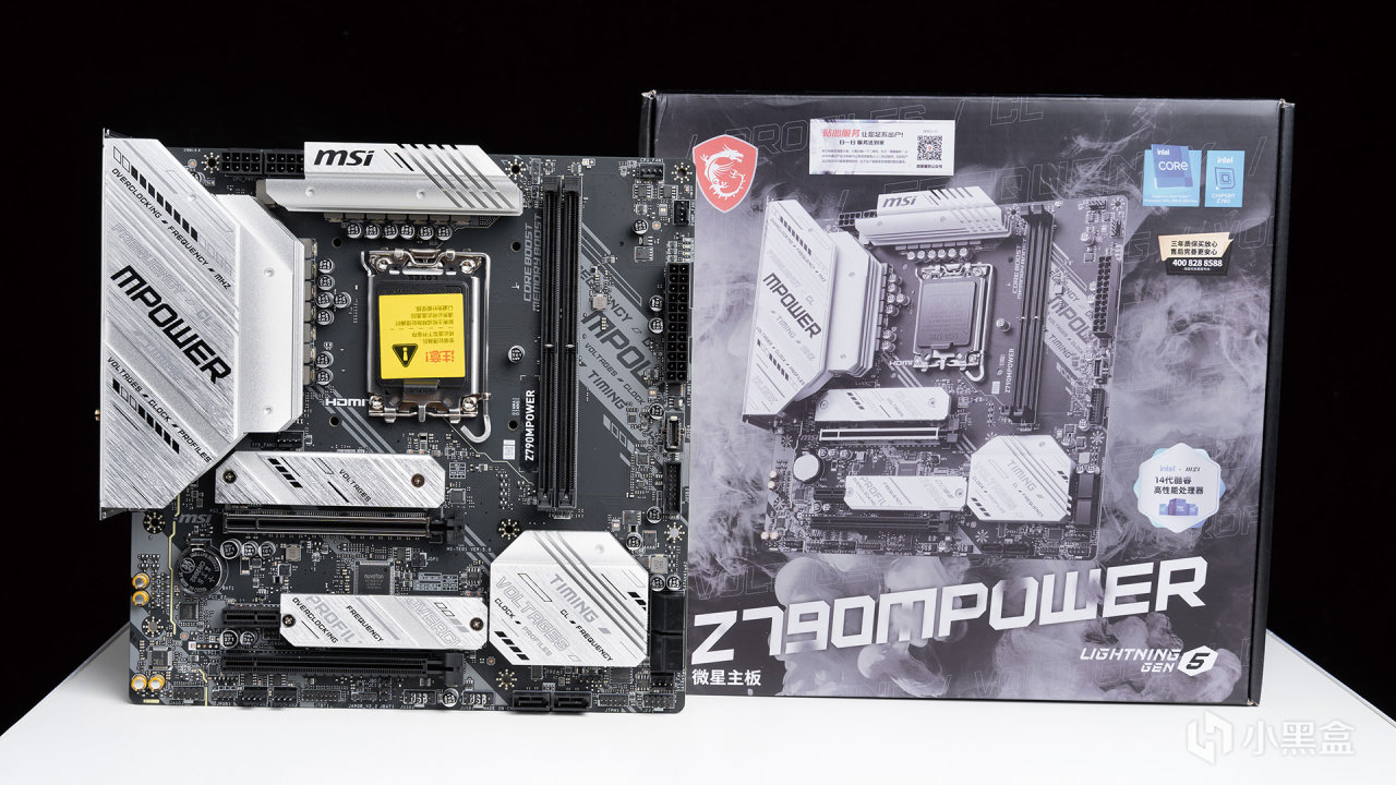 Z790MPOWER的包装正面采用了主板渲染图来展示,并标注了14代酷睿处理器的支持,从命名方式也能发现,Z790MPOWER中的“M”字母是和“Z790”紧凑排列的,代表着它是一款M-ATX板型的主板,和此前的MPOWER系列命名有所不同。