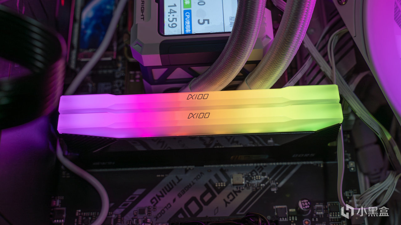 佰维WOOKONG悟空系列 DX100 DDR5 7200内存的RGB效果,发光面积确实足够大,不同色彩之间过渡也自然。