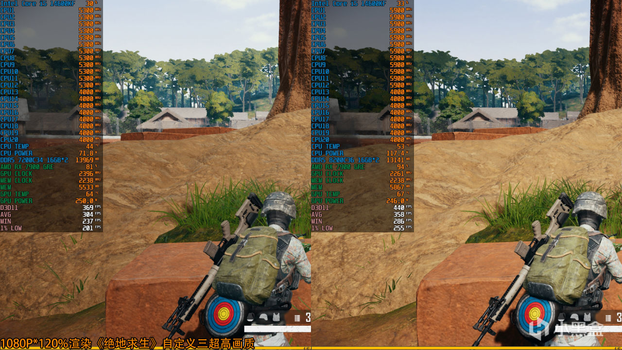 最后的最后,还进行了一个超频前后的游戏帧数测试,项目依然是1080P的《绝地求生》,CPU和内存双超之后,平均帧数提升18%,1% LOW帧更是提升27%,效果十分显著,如果把显卡更换成RTX 4090提升还会更明显,不过这样一套折腾下来,硬件价格自然比常规14600KF方案也高不少。