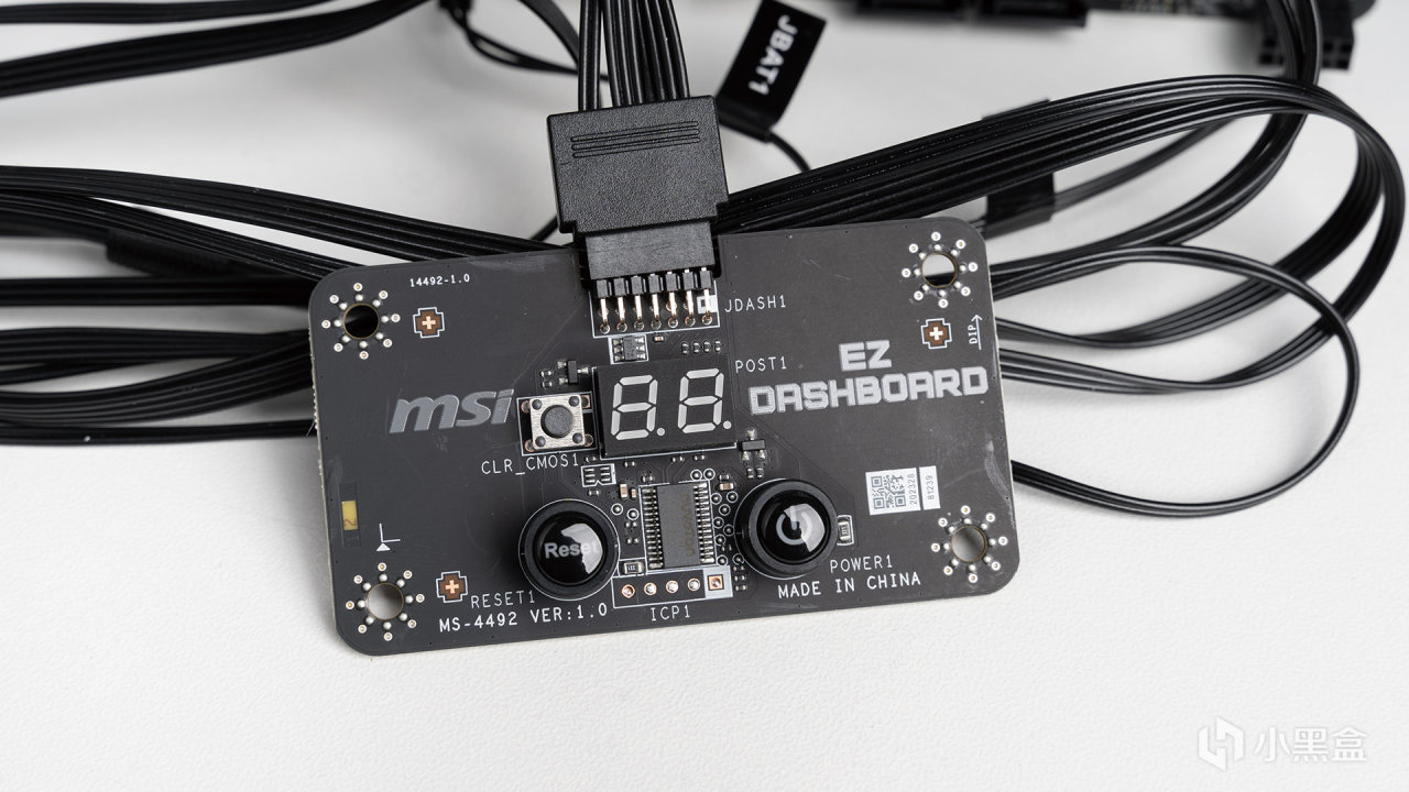 这个简易操作面板拥有DeBUG灯显示,并且有CLR_CMOS、Reset以及POWER三种功能按钮,大大提升了玩家的超频时的便利性,只是面板采用裸PCB板的形式看起来不够精致而已。