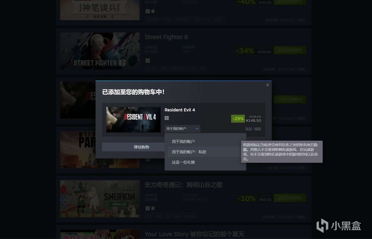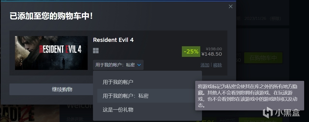 - 私密购买:为保障您的隐私,现可以在购入前即将游戏标记为私密,从一开始就把控制权掌握在自己手中。