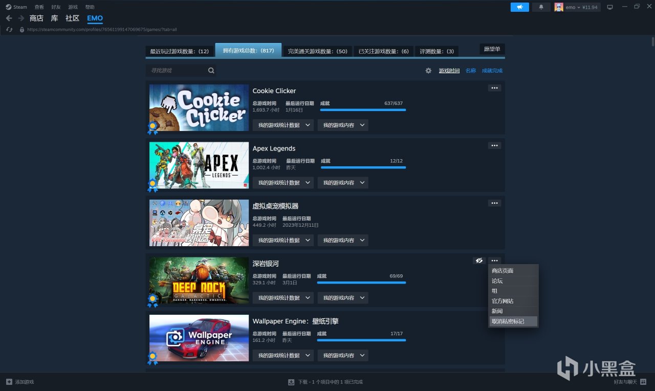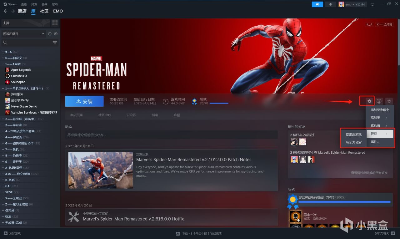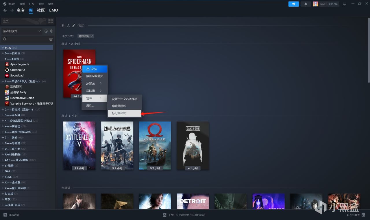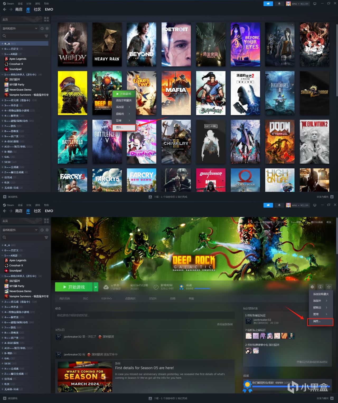 - 库存界面,在该游戏封面鼠标右键菜单中