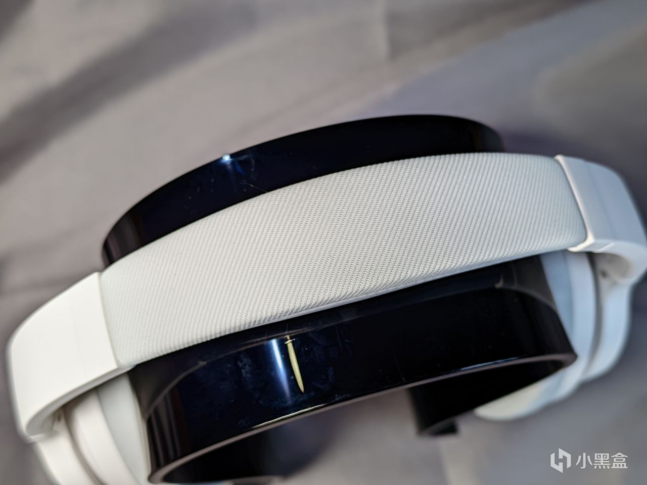 头梁的部分,space采用的是塑胶撞帆布的设计,使得其质感上比起纯塑料要好上不少,并且在底部做了海绵设计使得使用中并不会出现硌头的问题,不过其头梁的金属延展部分稍微有点紧,所以需要稍微使点劲才能达到理想的佩戴体验。