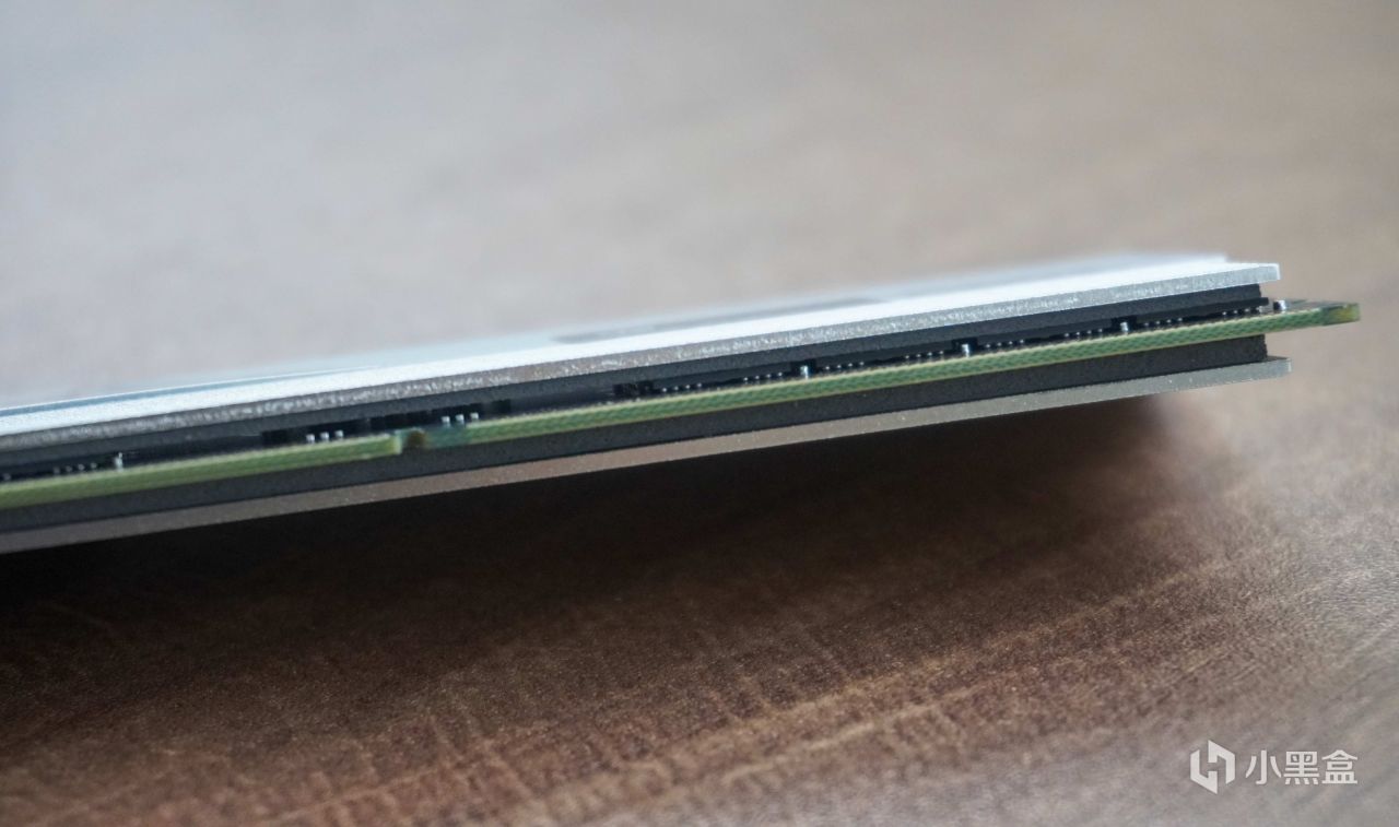 而且实际上从侧面可以看到,黑色的PCB就是内存,是夹在两片也有一定厚度的银色散热马甲里,并且在有内存颗粒的这一面覆盖着散热硅脂。在intel芯片组(B660、B760、Z690、Z790主板)上是可以支持Intel XMP 3.0,只需要进入主板BIOS界面中一键开启这个功能后,即能够稳定在6800MHz的内存频率下工作。