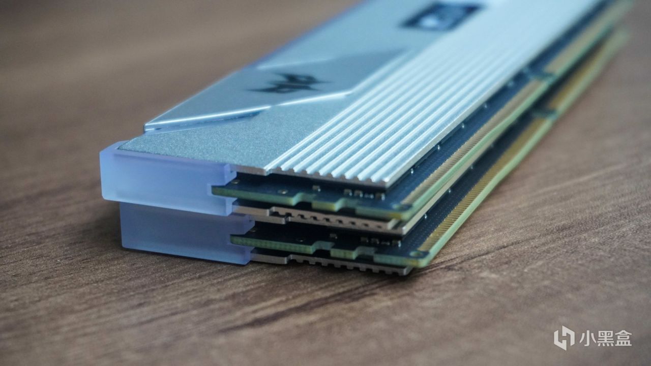 别看目前市面上DDR5内存条里很多品牌都推出了RGB灯条,但是能在质感上接近宏碁掠夺者的炫光星舰(Vesta)II 还真的不多,要么比它贵要么外观设计和质感都不如它。磨砂质感的银色的散热马甲,这种晶莹剔透的灯条导光柱就说明了RGB灯效肯定不会差到哪里去,要知道隐藏在灯条导光柱的下面是有8个独立的灯控区域,整个灯条导光柱的灯效还是很令人充满期待的。