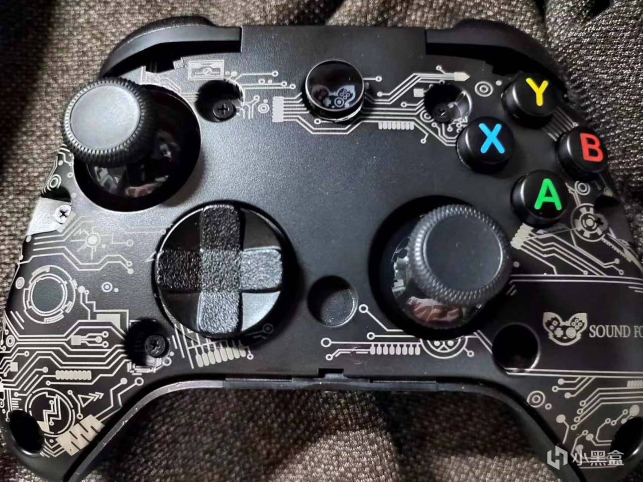 首先要提到的就是這款手柄最吸引我的外觀部分了,因爲奕狐做的實在是太太太漂亮了,默認的面殼是和外包裝一樣的墨綠配色,上面的花紋我非常喜歡,元素雖多但絲毫不花哨,類膚質的手感很舒適。揭下面殼後可以看到六個磁吸點,與手柄貼合後非常結實,不會出現掉落的問題。面殼下部也有電路板紋路的裝飾,細節做的非常到位。