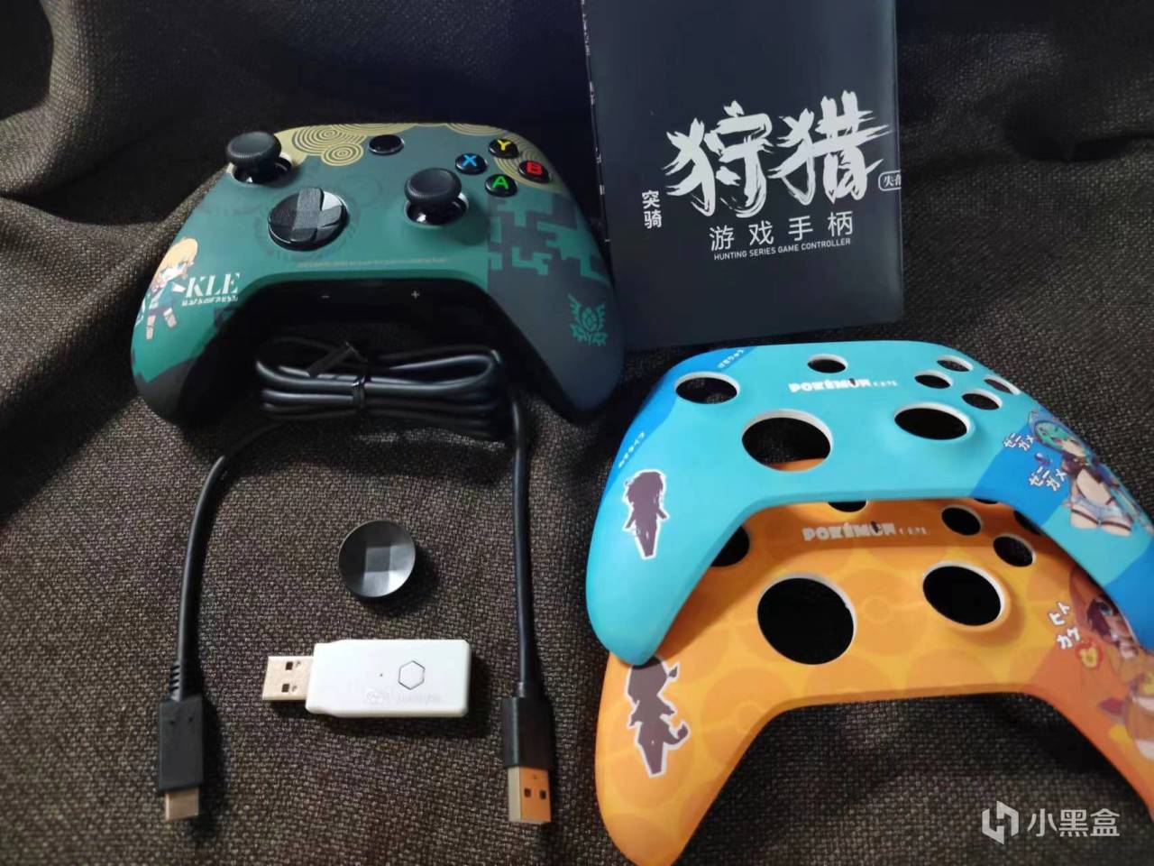 盒子整體是墨綠的配色,上面印着手柄的縮略圖,同時標註了該手柄的賣點。打開包裝後就能看見手柄和各種配件了。