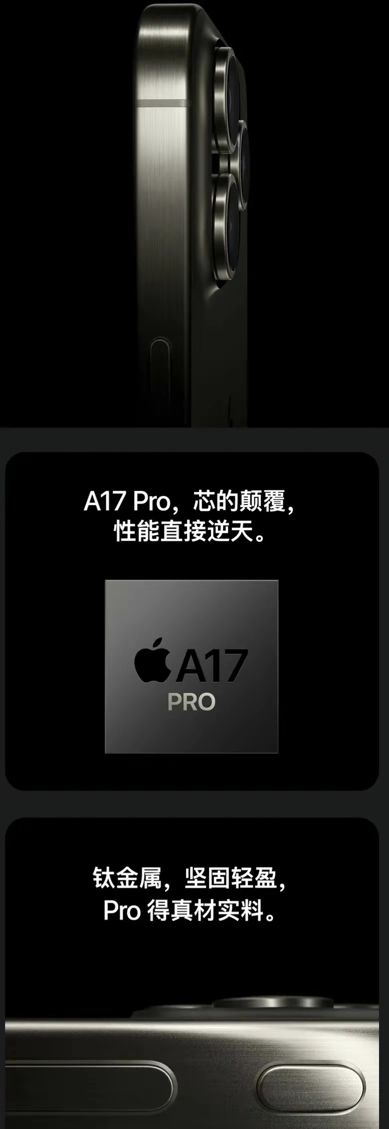 推荐理由:处理器为A17Pro性能顶级,续航安全感满满,苹果品牌辨识度高,iOS生态遥遥领先,钛金属材质让“土豪们”有了炫富的“理由”。
