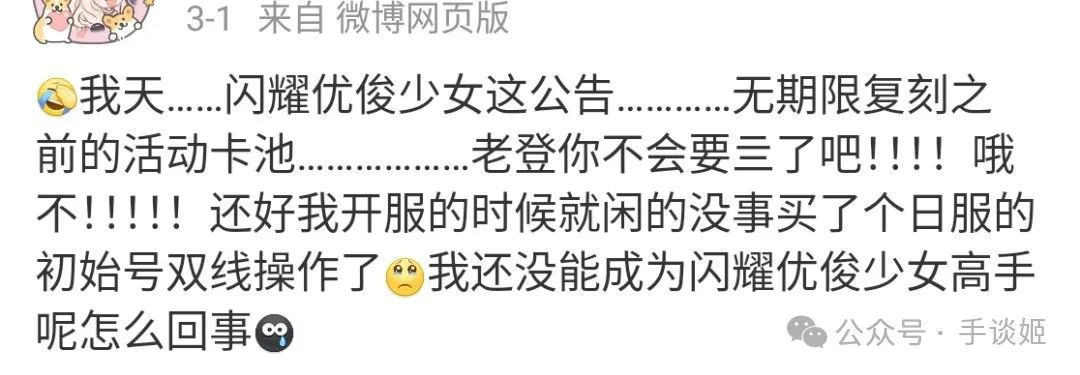 雖然說作爲補償,官方確實很大方,在每期復刻都送上免費10連,合計有90連,加上半週年活動送的大幾千蘿蔔,能讓大家抽卡抽個爽,但是玩家們此刻對遊戲的存亡的擔憂是發福利彌補不了的。