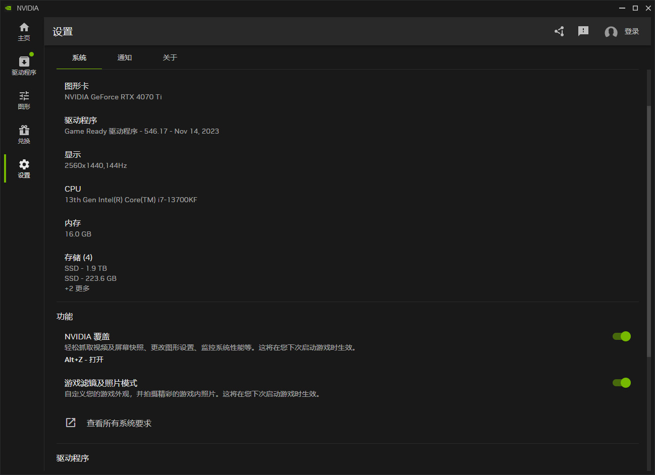 接下来简单介绍NVIDIA App中的几个模块,看看它的功能分区。