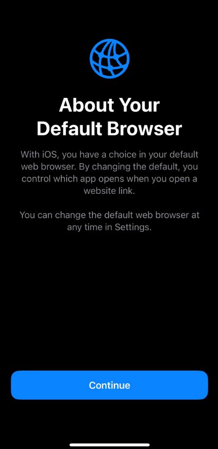 用户升级iOS 17.4或后续版本中首次打开Safari浏览器时将显示新的可选界面,将提示欧盟用户从选项列表中选择默认浏览器。