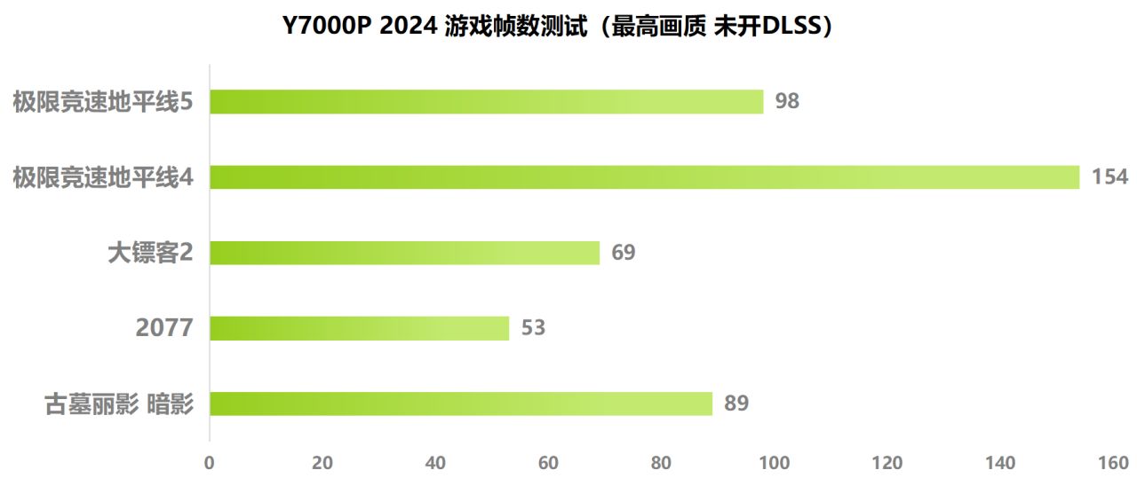 在更看重顯卡性能的3A遊戲中,這次Y7000P的提升幅度並不明顯。不過本身4060的性能足夠用,在未開啓DLSS的情況下也能將市面上常見的幾款高畫質3A遊戲推到60幀以上