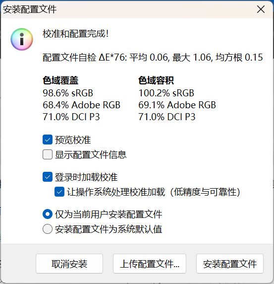 雖然是7000系機器,但聯想依舊配備了X-Rite色彩管理。不光出廠逐臺校色,在X-rite中也可以快速切換機器顯示色域配置。以下測試均爲在X-Rite切換到SRGB模式後的成績。