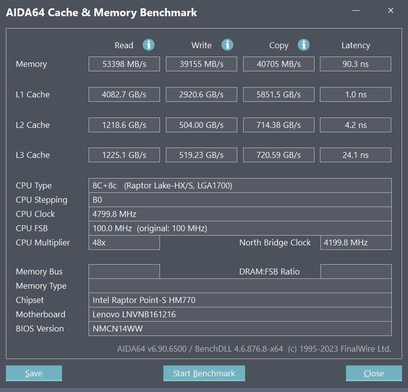 實測內存讀寫性能如圖,雖然DDR5本身擁有類似雙通道內存的機制,但單根內存的讀寫性能還是沒有兩根內存來得高,有條件的建議到手就換上32G內存,或者在選購時一步到位購入32G的版本。