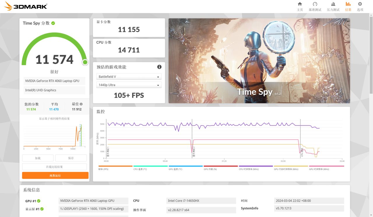 CPU提升到14代14650HX,但GPU繼續沿用RTX4060。不過得益於新散熱,理論值性能跑分和實際遊戲性能也均有小幅提升。