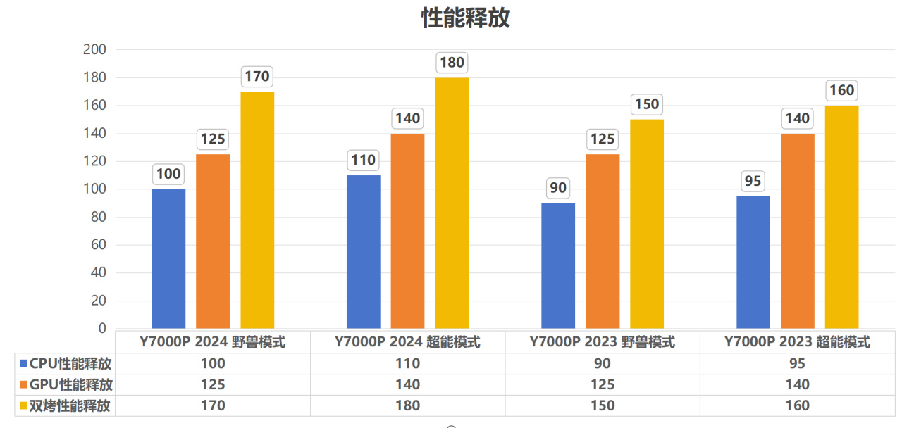 這次聯想在Y7000P上進行了不小的調整,全新的散熱機構,揭開“乾坤”轉變。採用全新的散熱機構和模具設計,顯著提升了整機的散熱能力,無論是單烤性能釋放還是雙烤性能釋放相比去年的2023款均有提升。