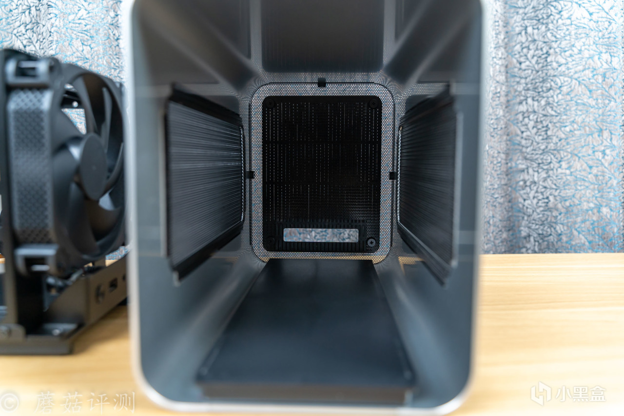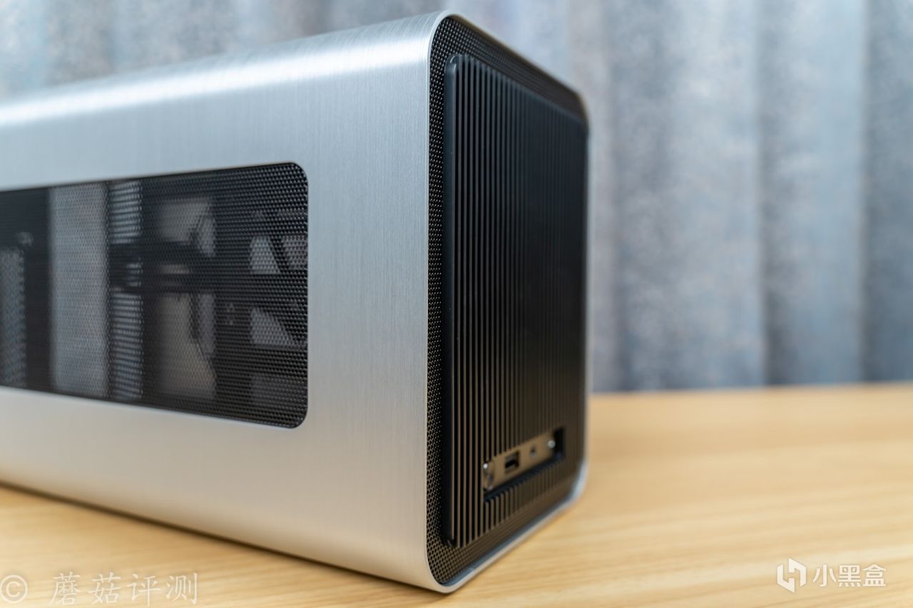 ▼机箱的另一侧,设计和对面相同,中间是黑色的金属冲孔网。