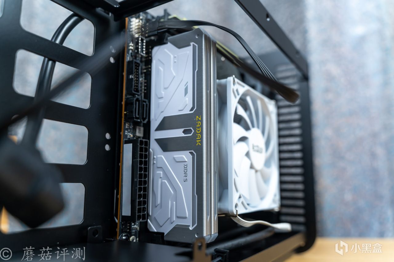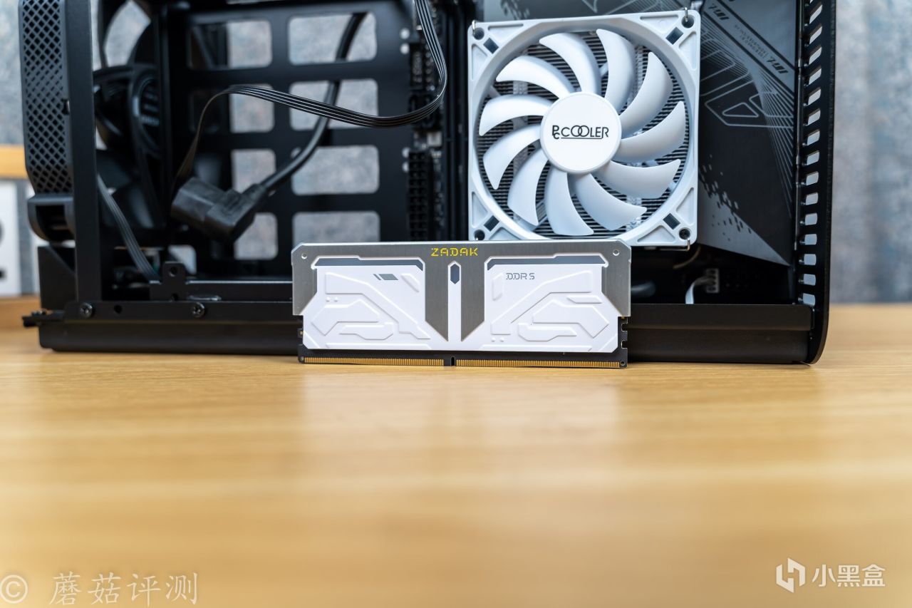 ▼内存用的是宇瞻的ZADAK的SPARK内存,16GB*2 6000MHz,内存的金属马甲采用撞色设计,金属马甲的顶部是银色的,表面采用拉丝处理,金属马甲的侧面是白色的,烤漆质感,表面细腻,两种不同颜色、表面处理,互相搭配,效果很不错。