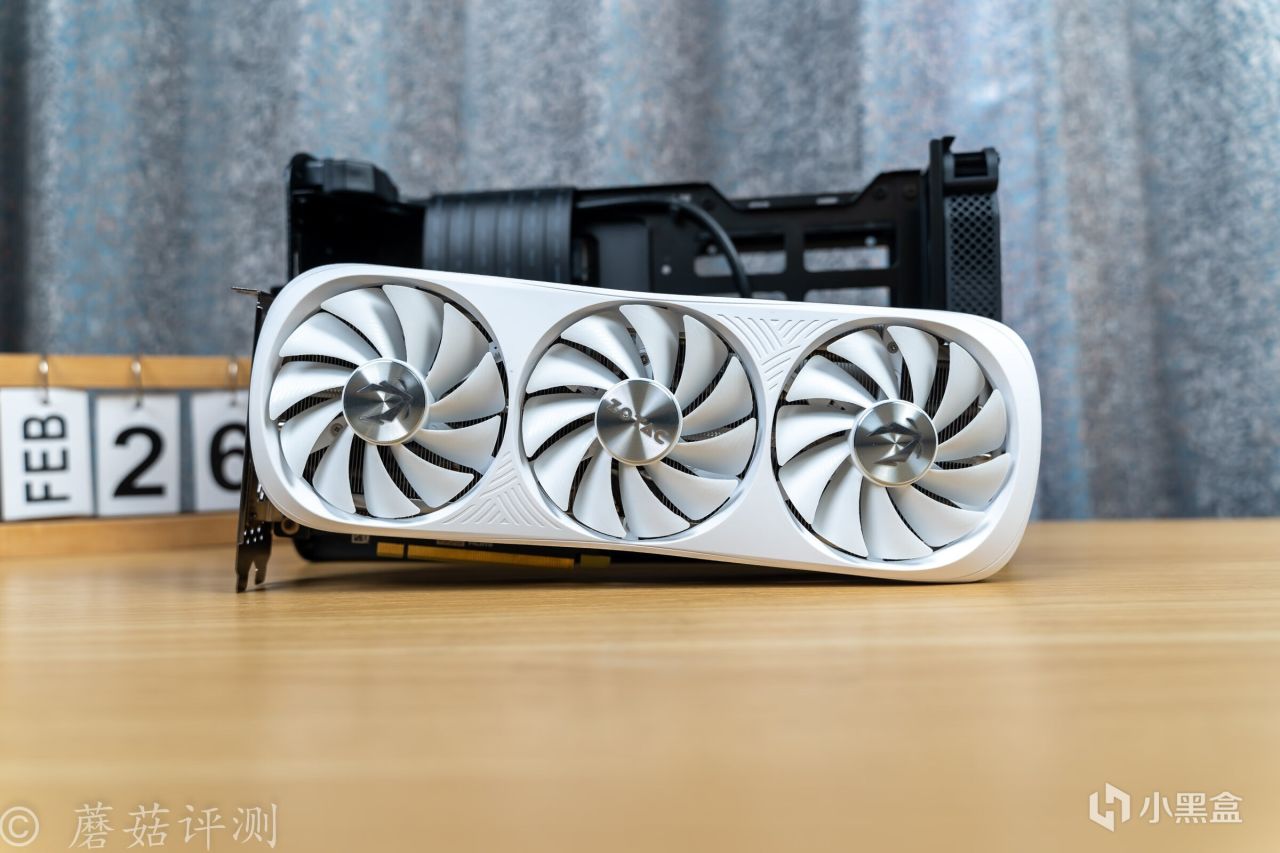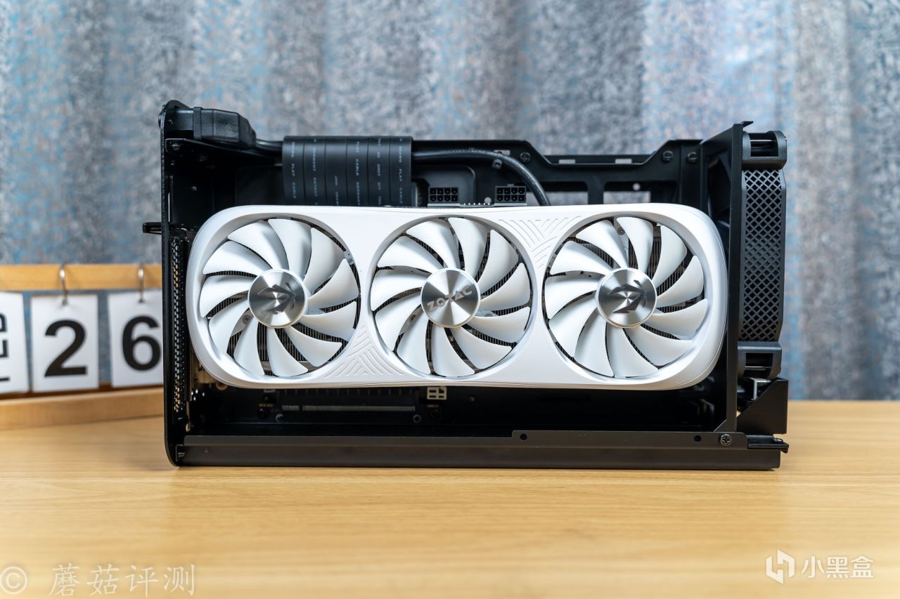 ▼接着安装显卡,索泰的RTX4070 Ti Super月白,这张显卡很漂亮,三风扇的散热模组也很给力,另外显卡的兼容性表现不错,长度不夸张。