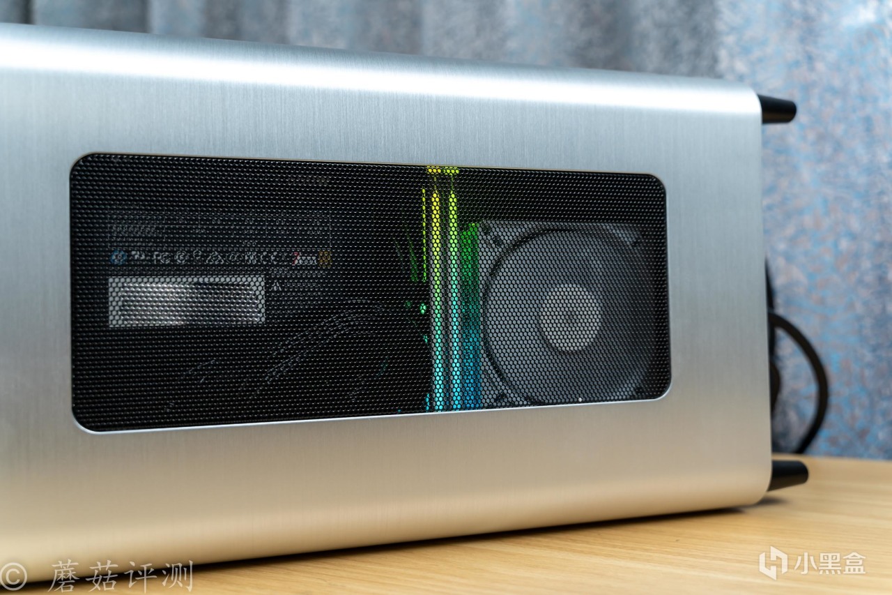▼机箱的另一侧,透过金属冲孔网,可以直接看到显卡的侧面,如果显卡的散热风扇有灯效的话,这里应该也会很好看。