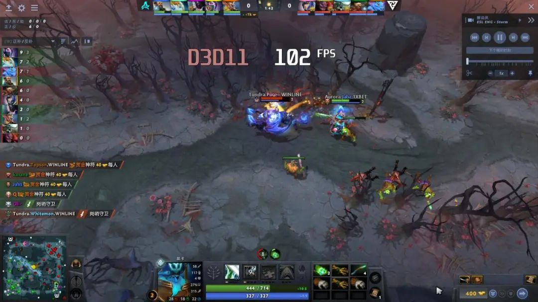 ▲FHD中畫質下,Radeon 780M運行《DOTA2》團戰場景也有100fps以上