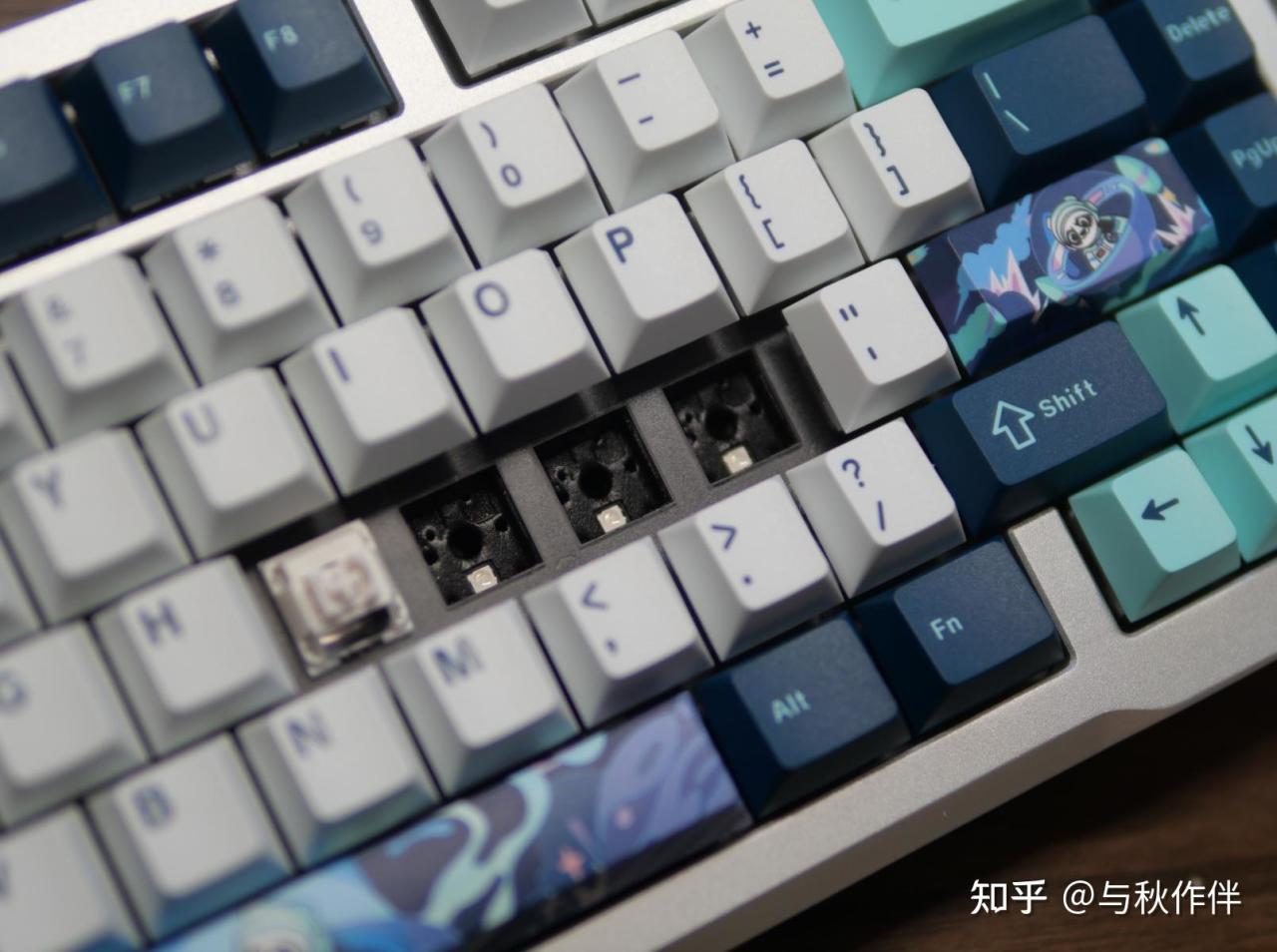 另外,就是某种程度上说,这把键盘是有一点漏轴的,当然我一直不认为漏轴属于缺点,只是设计风格,尤其下灯位+导光柱,漏出来的效果很好看。