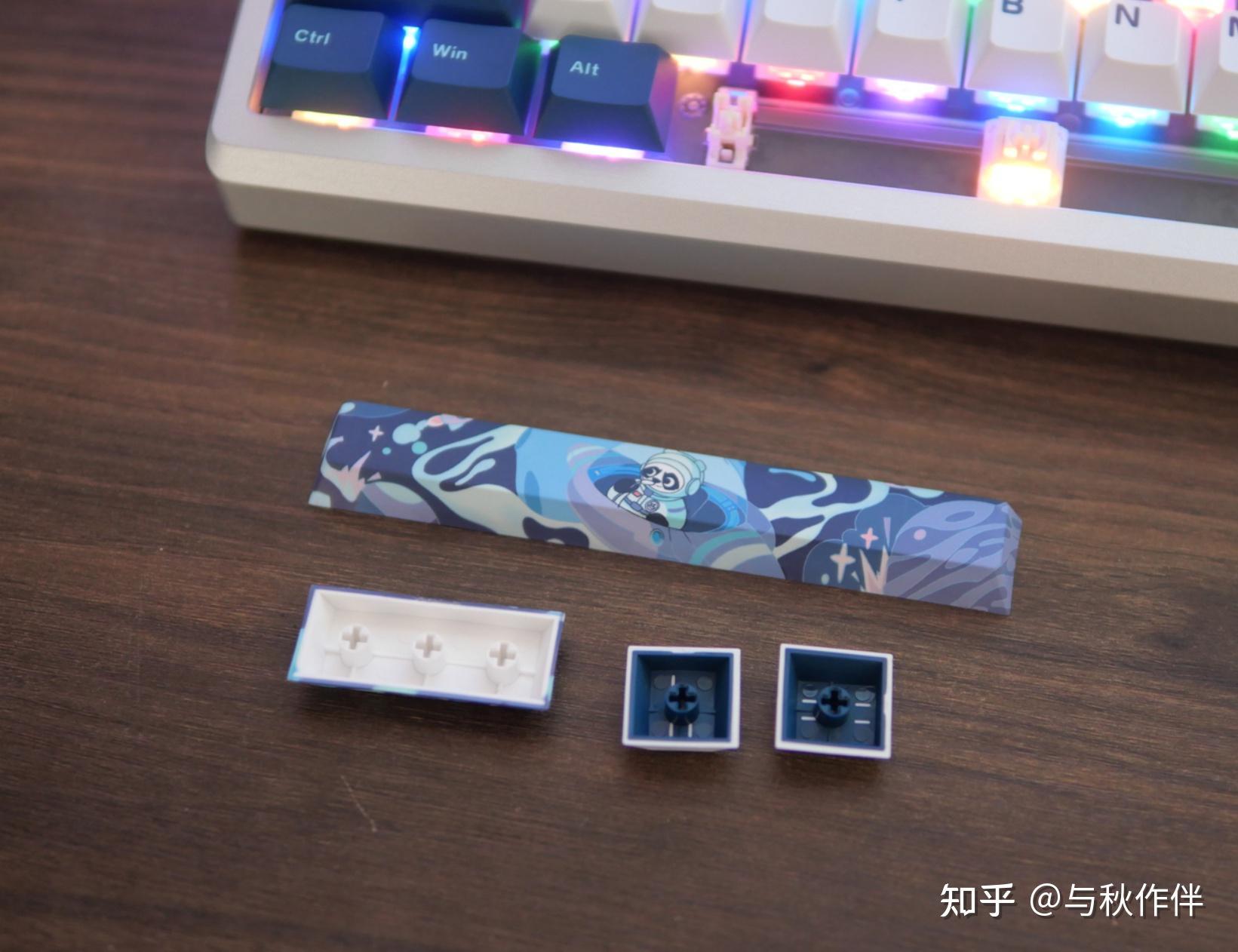 这把键盘的键帽整体 工艺水准都是挺不错的,包括配色和图案搭配也都比较顺眼。最不易的其实是它的键帽搭配和图案都是原创IP。