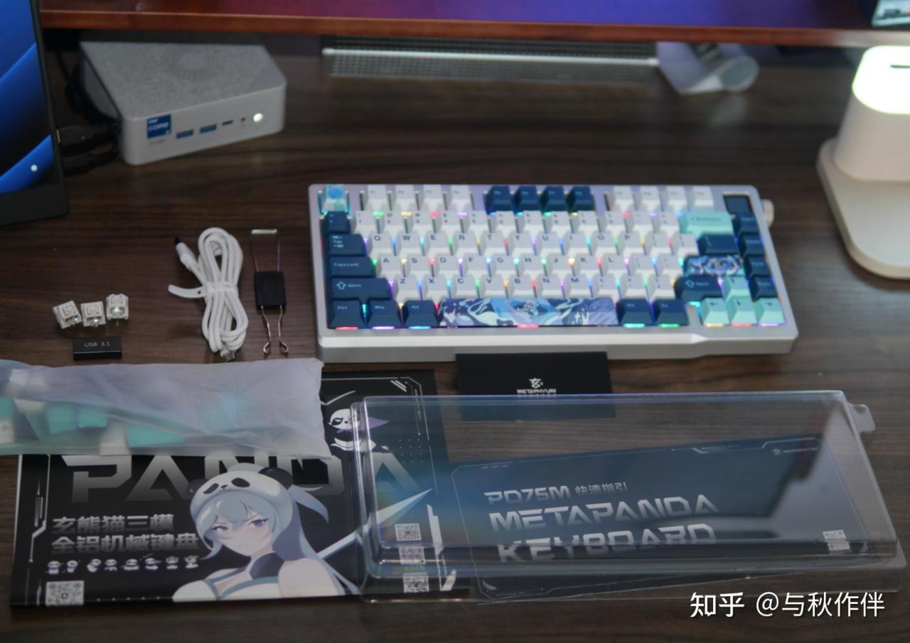 再这样的前高下,短时间打字还行,长时间使用强烈建议加一个掌托,否则手腕的压力实在是太大了,实际加了掌托之后,使用体验瞬间就好了很多。所以我猜这把键盘以后算是告别不了掌托了。好消息是,现在买PD75M官方会总一个熊猫图案手托,算是一个另类的售后吧。