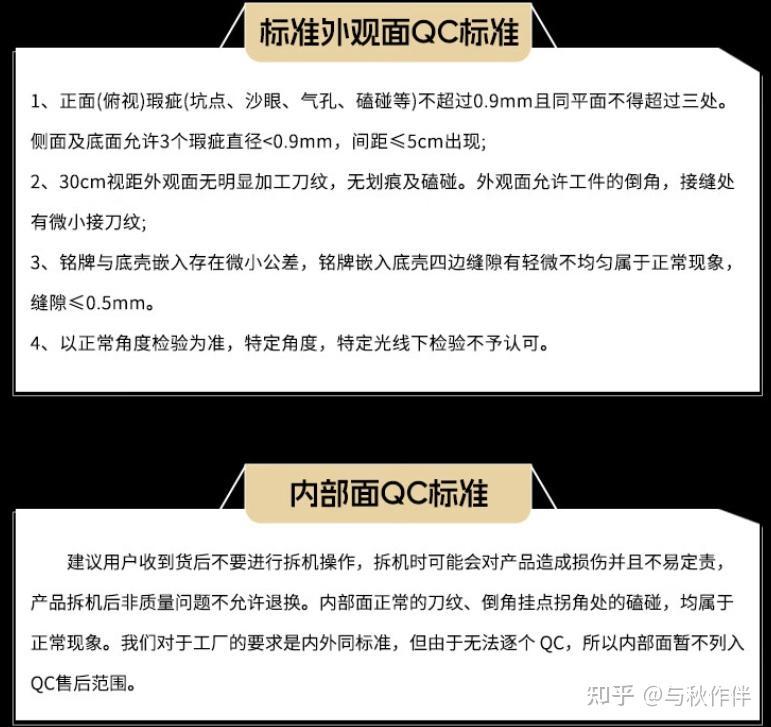 铝坨坨本身最容易扯皮的地方在于它表面的划痕问题,别看是金属块,但是铝合金本身比较软,容易在运输和生产过程中产生一些划痕之类的瑕疵。加上这把键盘首发的时候确实出了点问题,所以现在玄派直接把QC标准挂在了商品页上。